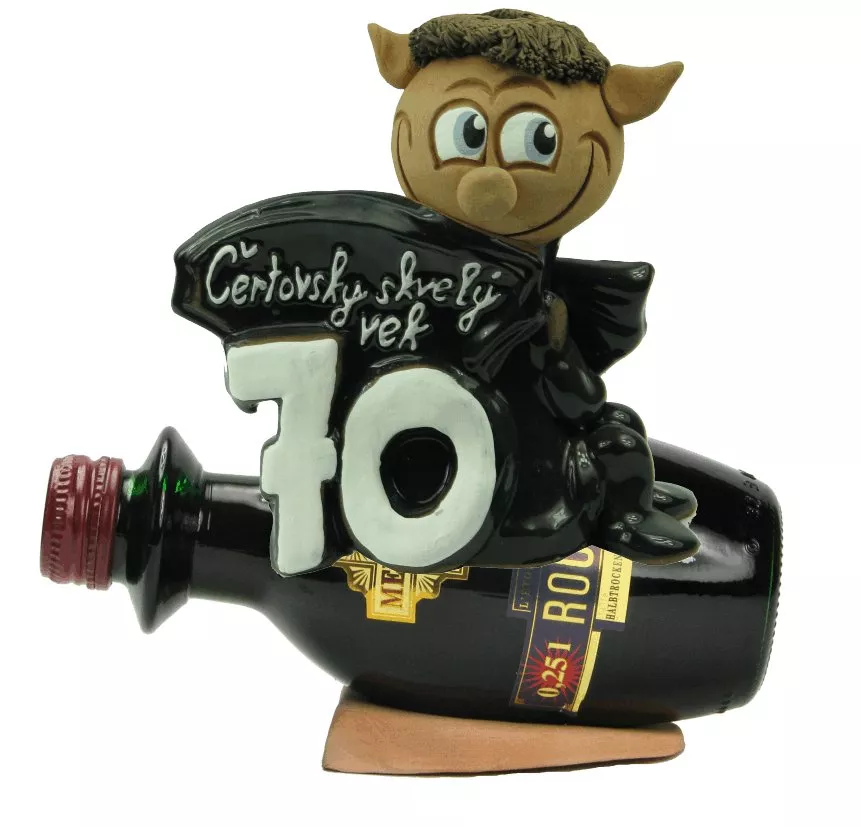 Postavička sedí na víne, ktoré je umiestnené na keramickom podstavci. Vína používame francúzske a to JP.Chenet a Medinet rôznych odrôd o objeme 0,25 l.
