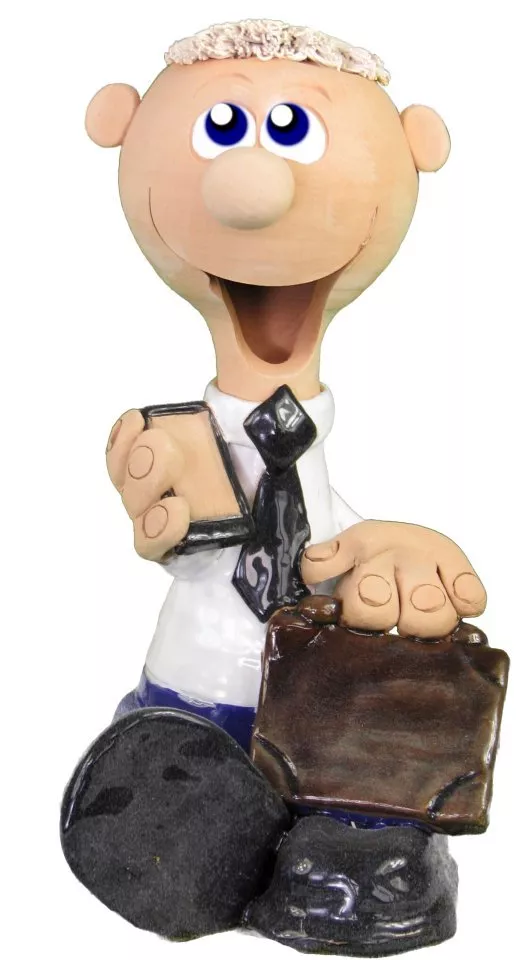 Figúra muža s mobilom a kufríkom je extra pekne vymodelovaná a nádherne vymaľovaná glazúrami.
