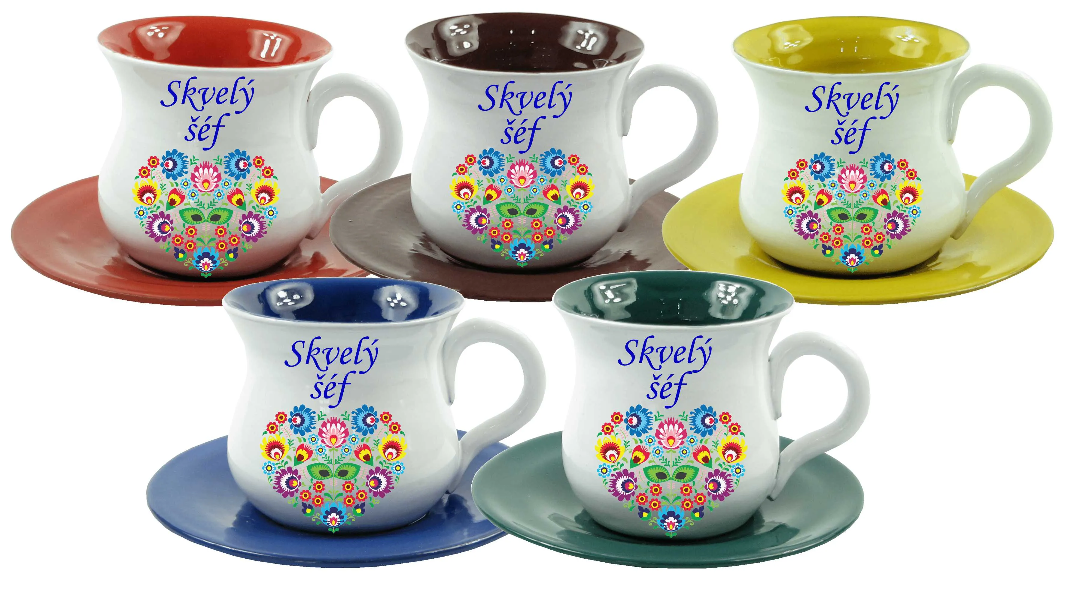 Na výrobku je nádherné folklórne srdiečko z kvietkov a nápis skvelý šéf.