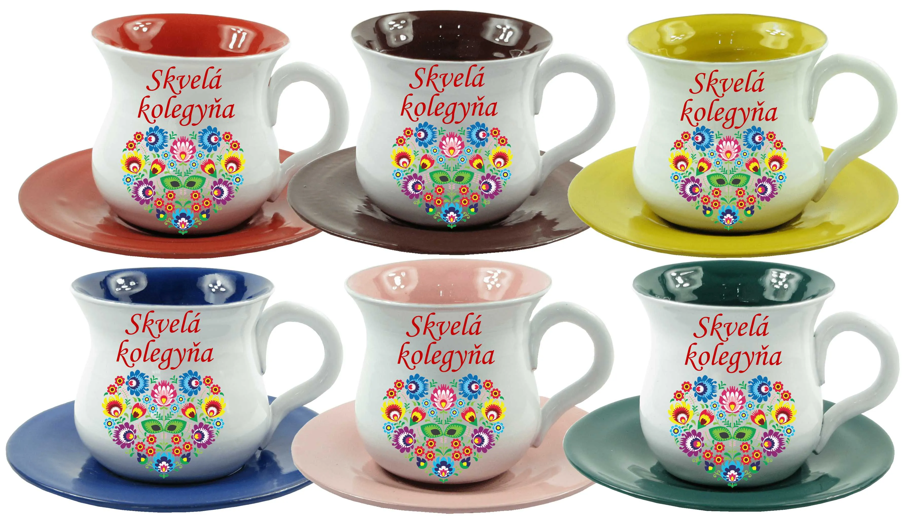 Na výrobku je nádherné folklórne srdiečko z kvietkov a nápis skvelá kolegyňa.