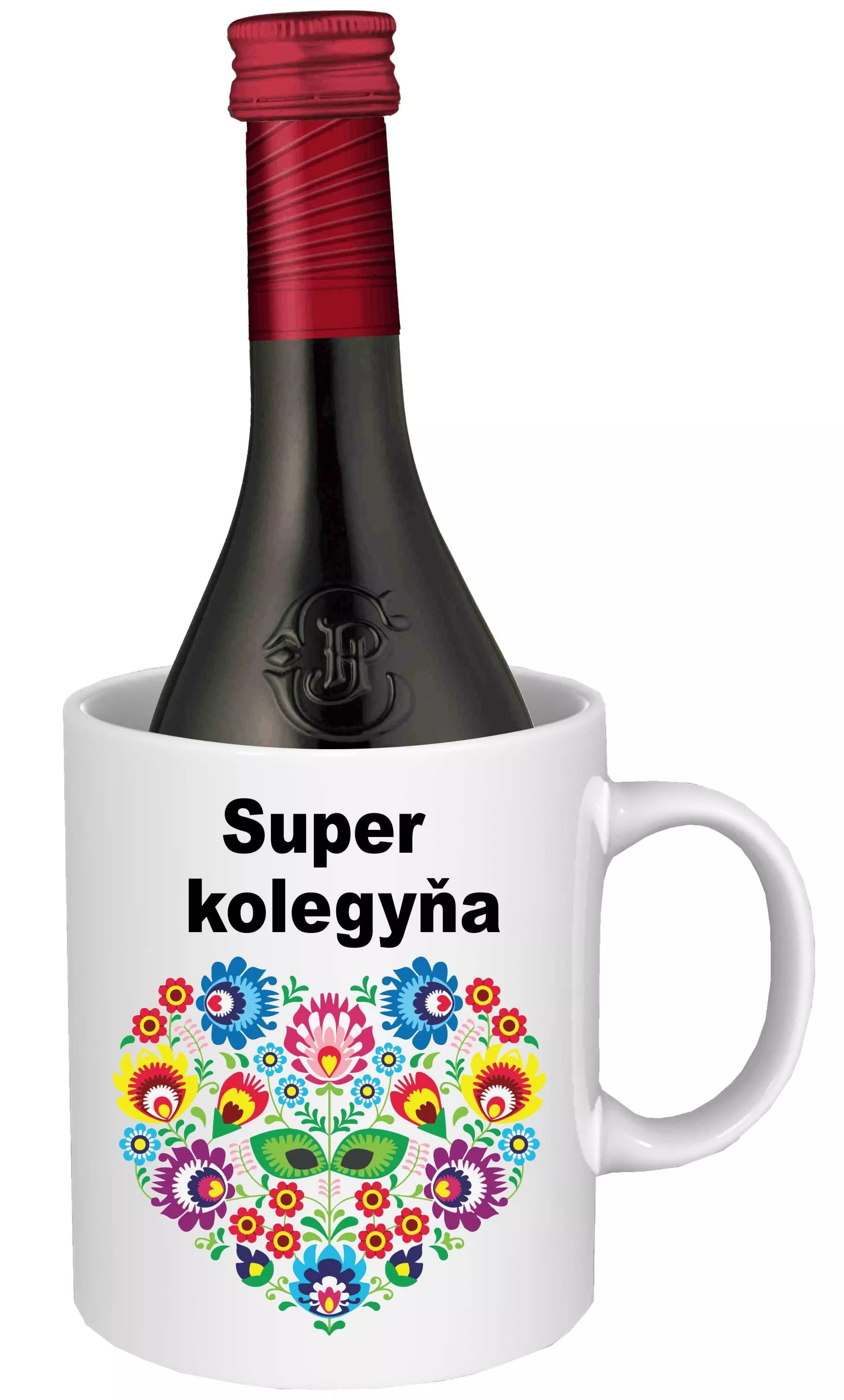 Hrnček bielej farby s folklórnym srdiečkom z kvietkov.