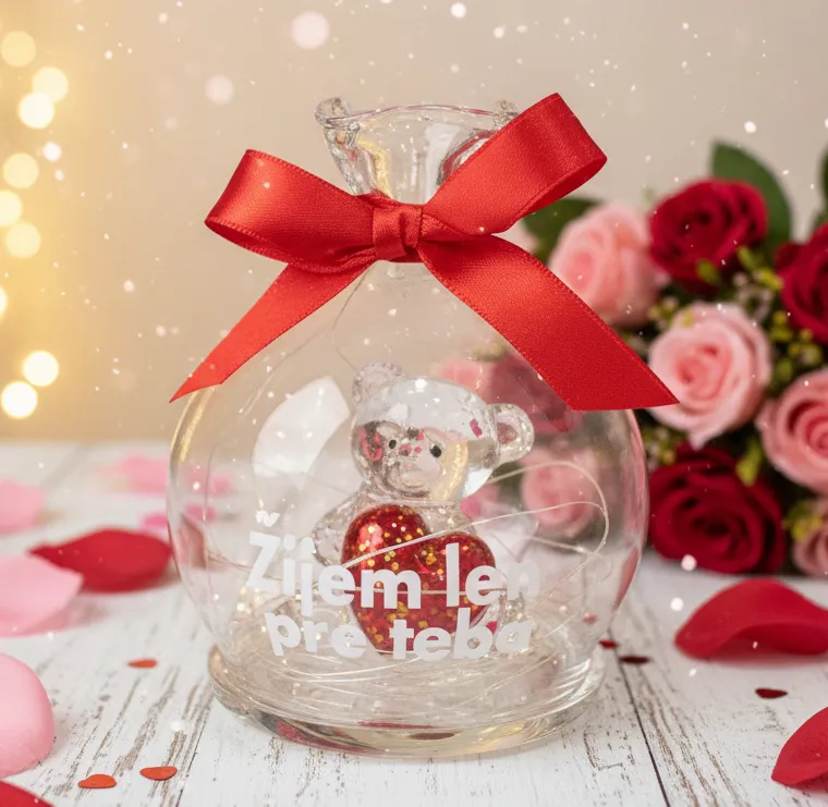 Tento „Macko vo Vrecku“ nie je len obyčajná ozdoba. Je to vyznanie ukryté v skle. Ak hľadáte niečo výnimočnejšie než len kyticu kvetov, tento macko je darčekom, ktorý nikdy nezvädne – presne ako Vaša láska.