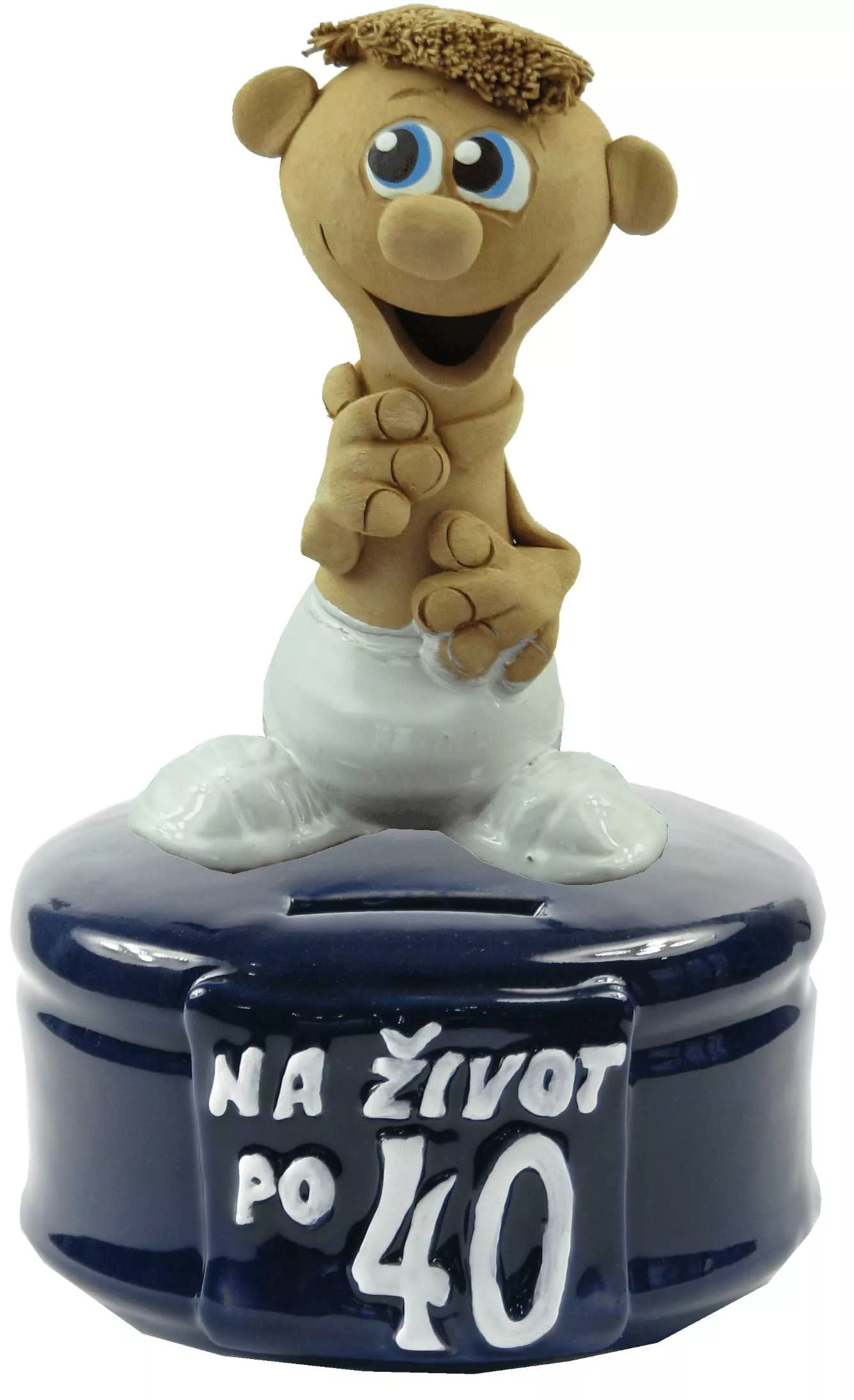 Keramická postavička muža, alebo ženy k narodeninám na keramickom podstavci – pokladnička.