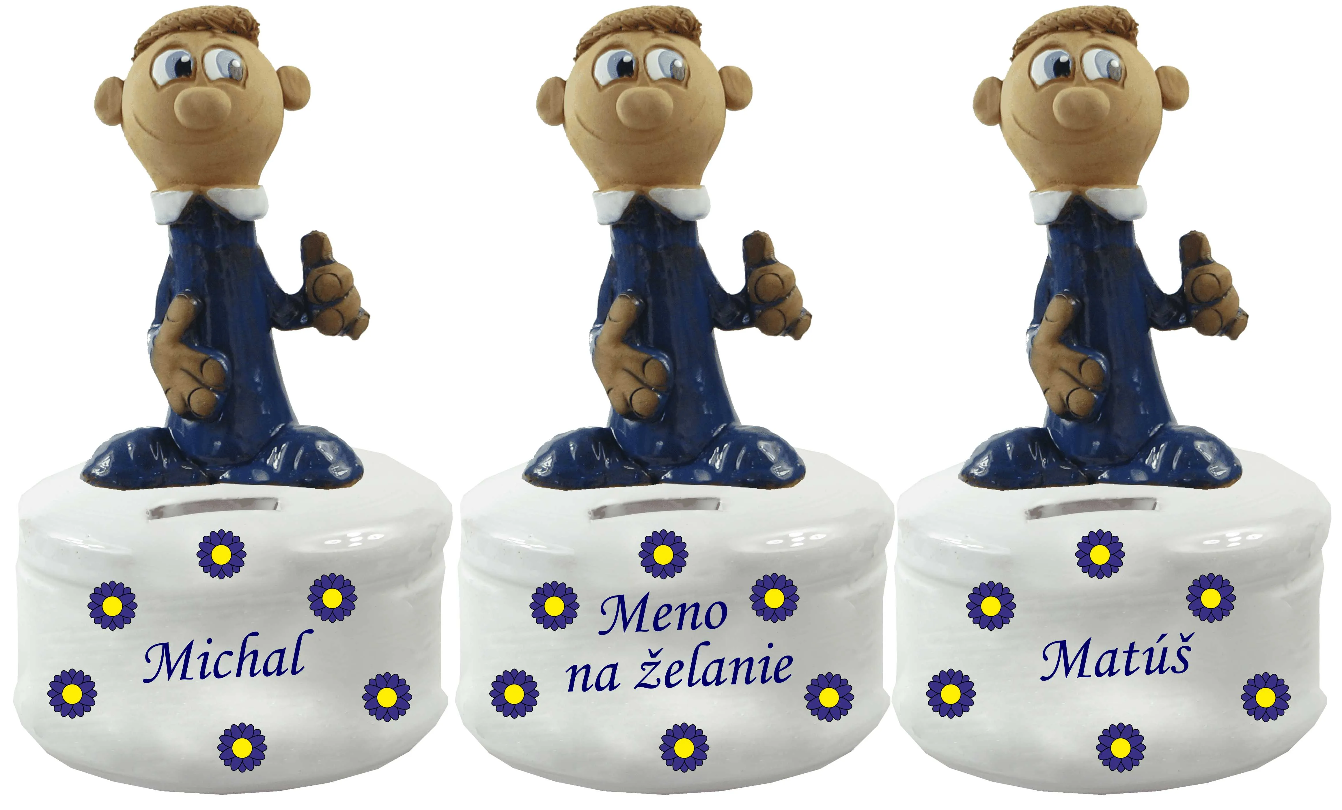 Keramická postavička muža, alebo ženy k narodeninám na keramickom podstavci – pokladnička.