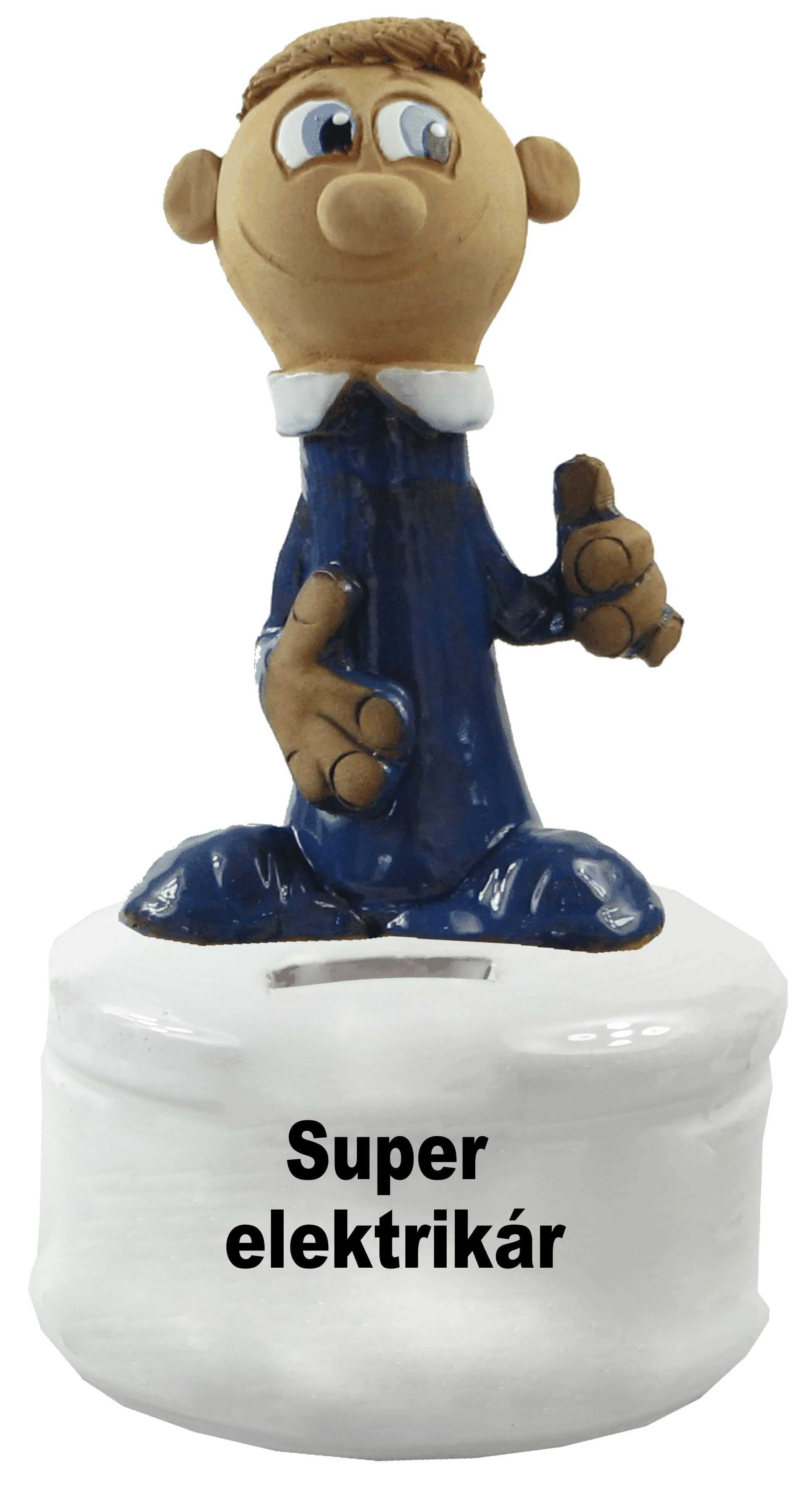 Pokladnička s postavičkou a s nápisom super elektrikár