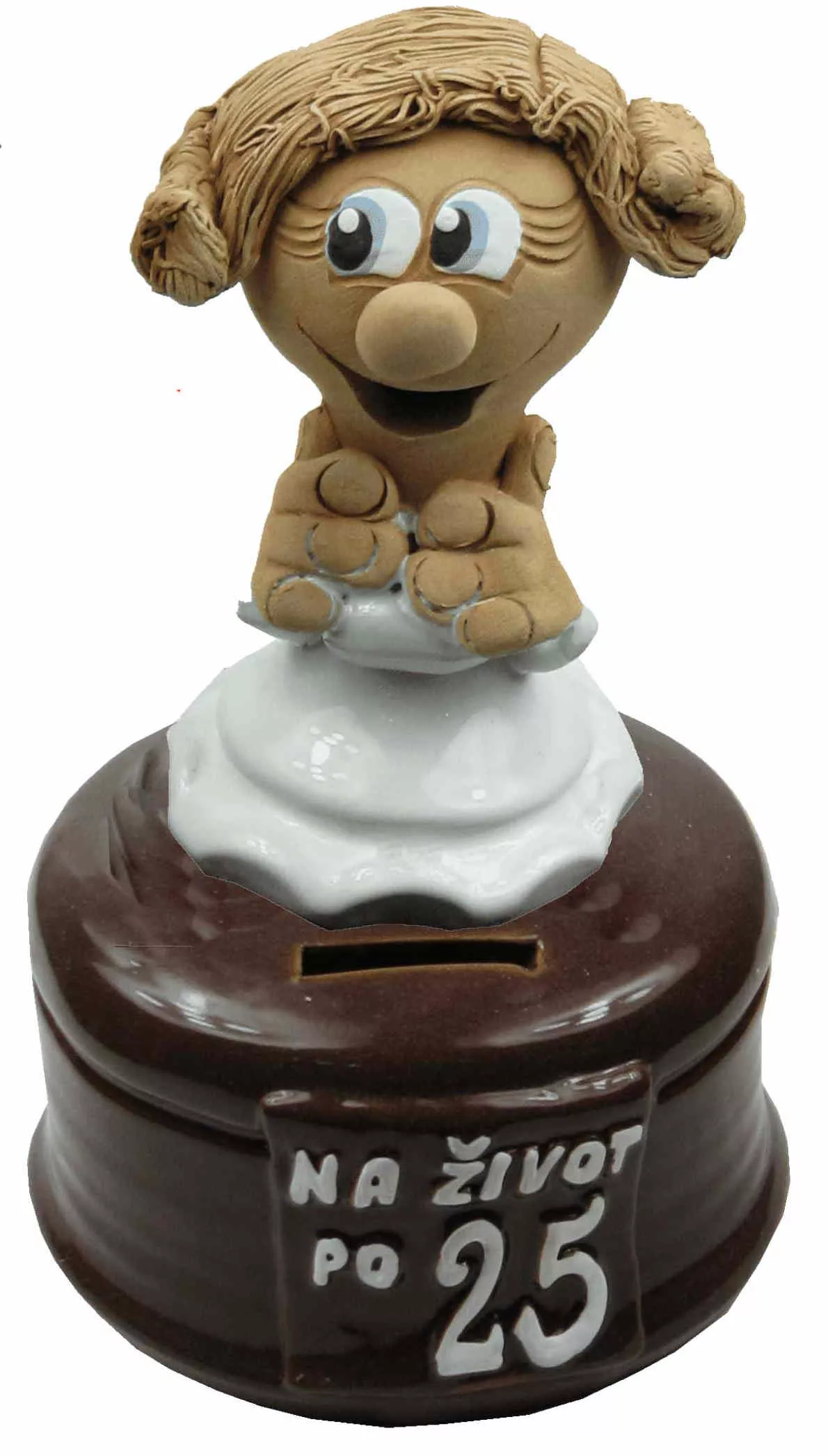 Figúrka má  na podstavci nápis : na život po... a výročné číslo, ktoré si vyberiete. Hlinená pokladnička je určená pre mužov a ženy k narodeninám.