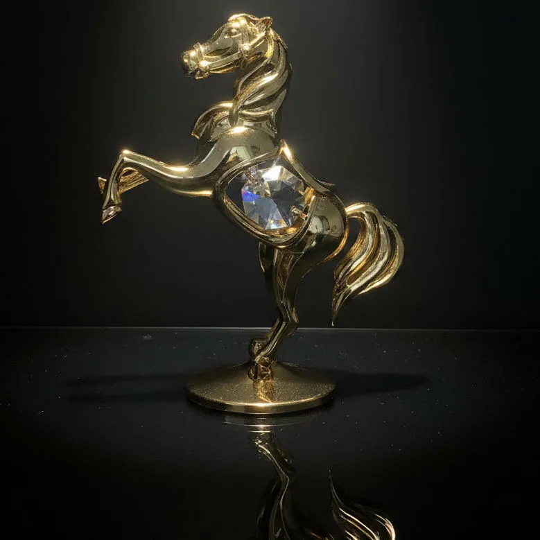 Pozlátená figúrka vzpínajúceho sa koňa so Swarovski krištáľom (9 cm)