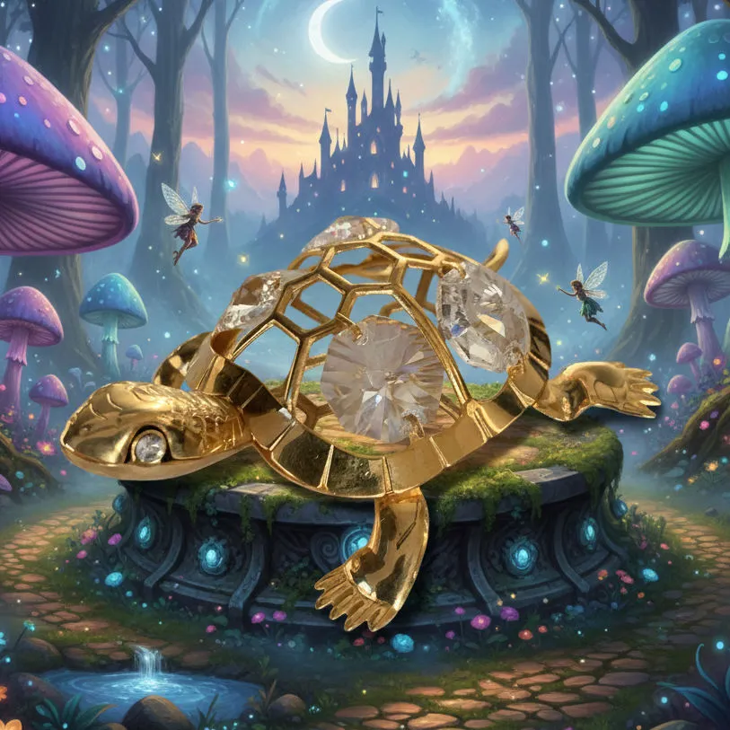 Vneste do svojho domova symbol dlhovekosti, múdrosti a pokoja s touto nádhernou figúrkou korytnačky. Tento precízne spracovaný interiérový šperk kombinuje rozprávkovú eleganciu s luxusným vyžarovaním zlata a krištáľového lesku.
