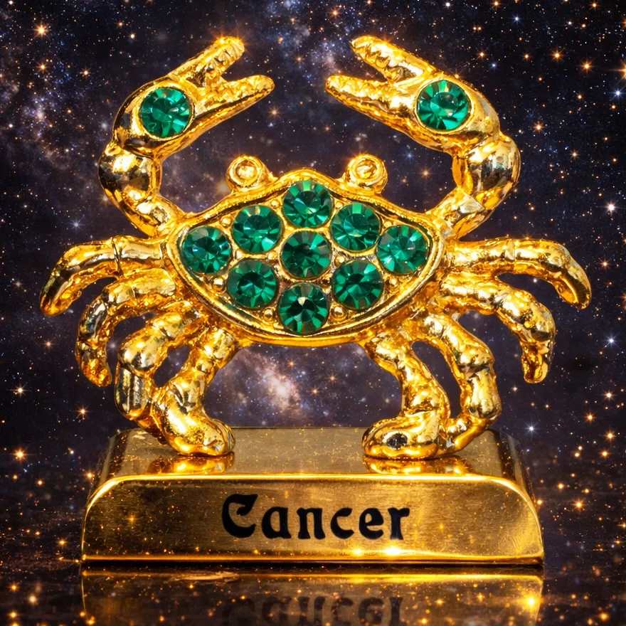 Elegantná dekorácia v tvare znamenia Rak, ktorá symbolizuje citlivosť, ochranu a rodinné hodnoty. Precízne spracované znamenie je pozlátené 24-karátovým zlatom a zdobené trblietavými krištáľmi, ktoré mu dodávajú luxusný vzhľad a jedinečný lesk.