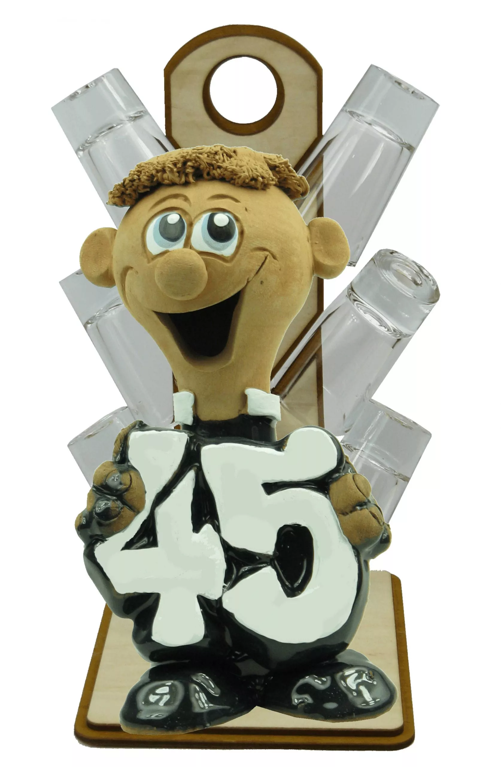 Stromček s pohárikmi a figúrkou - narodeniny s číslom 45