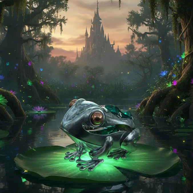 Smaragdovozelené krištále: Chrbát žabky zdobia dva veľké brúsené krištále v sýtej zelenej farbe, ktoré pripomínajú drahé kamene a dodávajú dekorácii luxusný vzhľad.