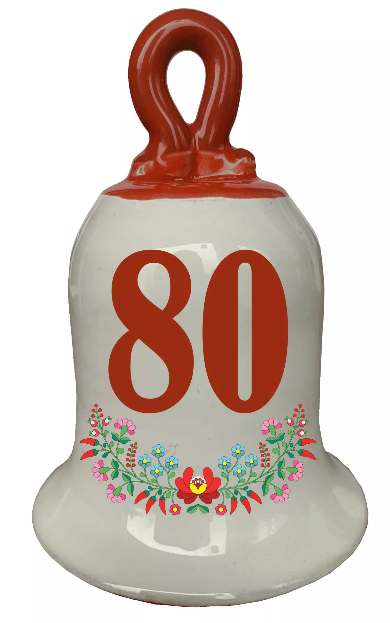 Zvonček k narodeninám s číslom 80 Červená